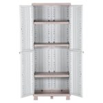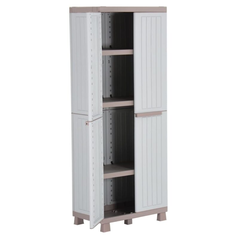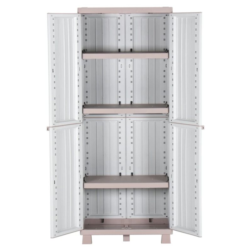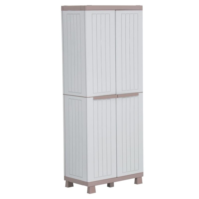Découvrez l’efficacité alliée à l’esthétique avec cette armoire de rangement avec 2 portes 68x39x170cm Gris clair/beige, un ajout élégant et fonctionnel à n’importe quel espace. Sa conception robuste, constituée entièrement de polypropylène (PP), assure une longue durée de vie tout en simplifiant le nettoyage. Elle se distingue par sa modularité, grâce à ses trois étagères ajustables qui vous permettent d’optimiser l’espace selon vos besoins. La sécurité de vos affaires est garantie par un système de verrouillage robuste et sa porte, s’ouvrant largement jusqu’à 180 degrés, facilite l’accès à vos objets.