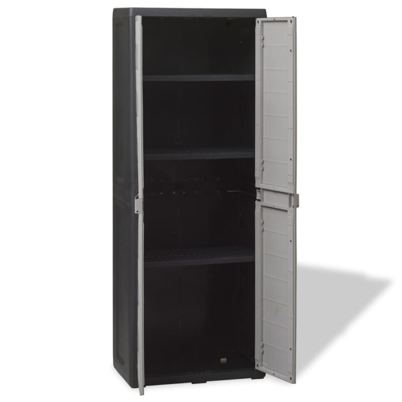 Découvrez l’armoire de rangement de jardin avec 3 étagères noir et gris
