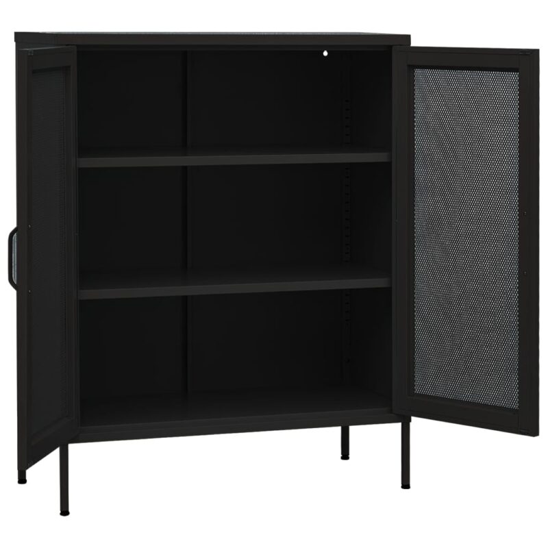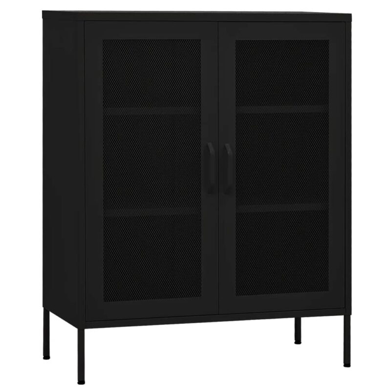 Améliorez l’apparence et l’organisation de votre espace avec l’armoire de rangement Noir 80x35x101,5 cm Acier. Son style contemporain ne manquera pas d’ajouter une touche de sophistication à votre déco. Fabriquée en acier solide, cette armoire est conçue pour durer et résister à l’usure quotidienne. Elle dispose de niveleurs ajustables en bas, vous offrant la flexibilité de la stabiliser parfaitement, même sur les surfaces irrégulières. À l’intérieur, deux portes en treillis métallique dissimulent des étagères modulables, vous permettant ainsi de personnaliser l’espace de stockage pour des objets aussi variés que des volumes, des magazines et vos incontournables.