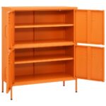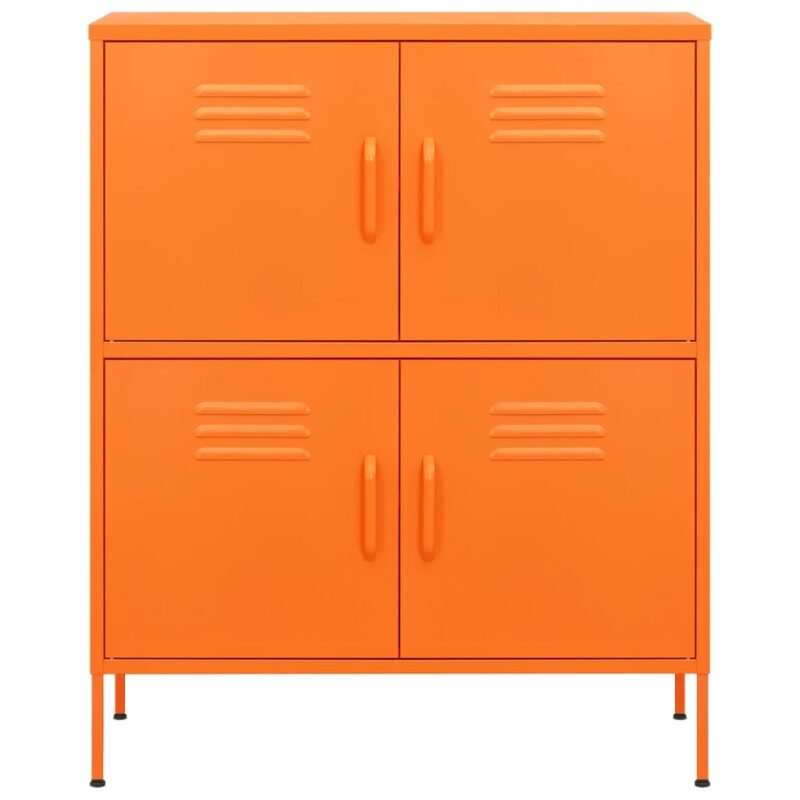 Organisez votre intérieur avec style grâce à cette Armoire de rangement Orange 80x35x101,5 cm Acier. Conçue pour offrir une solidité incomparable, la structure en acier garantit une durabilité et une stabilité remarquables. Pratique, cette armoire comprend deux étagères ajustables qui vous offrent la flexibilité nécessaire pour ranger des objets de différents formats, tels que des DVD, des équipements multimédias et des livres. Elle est aussi dotée de niveleurs au pied pour assurer un équilibre parfait sur toute surface. Entretenez-la aisément avec un simple coup de chiffon humide.