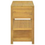 L’armoire de salle de bain 90x45x75 cm Bois de teck solide présente un design chic, parfaitement taillé pour s’intégrer avec aisance dans n’importe quel décor intérieur. Conçue pour offrir à la fois attrait visuel et fonctionnalité, cette pièce est un véritable atout pour votre espace de toilette. L’utilisation de bois de teck solide, réputé pour sa solidité et son endurance face aux variations climatiques, confère à cette armoire une qualité sans compromis.