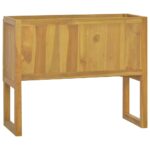 Le choix du bois de teck pour cette armoire n’est pas anodin; reconnu pour sa solidité, il est également apprécié pour sa résilience face aux conditions humides, typiques des salles de bain. Chaque pièce est issue d’un processus soigneux de sélection, séchage, et polissage pour obtenir un fini lisse qui invite à la caresse du regard et du toucher. Le mobilier en bois de teck véritable est non seulement robuste mais aussi naturellement élégant, avec des variations de couleur et de grain qui rendent chaque exemplaire unique.