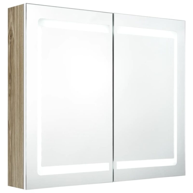 Apportez une atmosphère chaleureuse à votre salle d’eau grâce à l’Armoire de salle de bain à miroir LED Blanc et chêne 80x12x68cm. Cette élégante armoire murale équipée d’un éclairage LED incarne parfaitement le chic contemporain, tout en diffusant une lumière apaisante et flatteuse. Conçue avec un souci de durabilité, la structure de ce meuble est en MDF revêtu d’une surface en mélamine robuste et élégante. La bande LED à faible consommation assure une illumination optimale pour effectuer vos routines beauté et illumine à la fois votre espace, votre reflet et votre expression. À noter, le bouton situé en bas vous permet d’activer ou de désactiver l’éclairage à votre guise.
