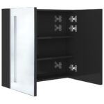 Armoire de salle de bain à miroir LED Noir brillant 62x14x60 cm