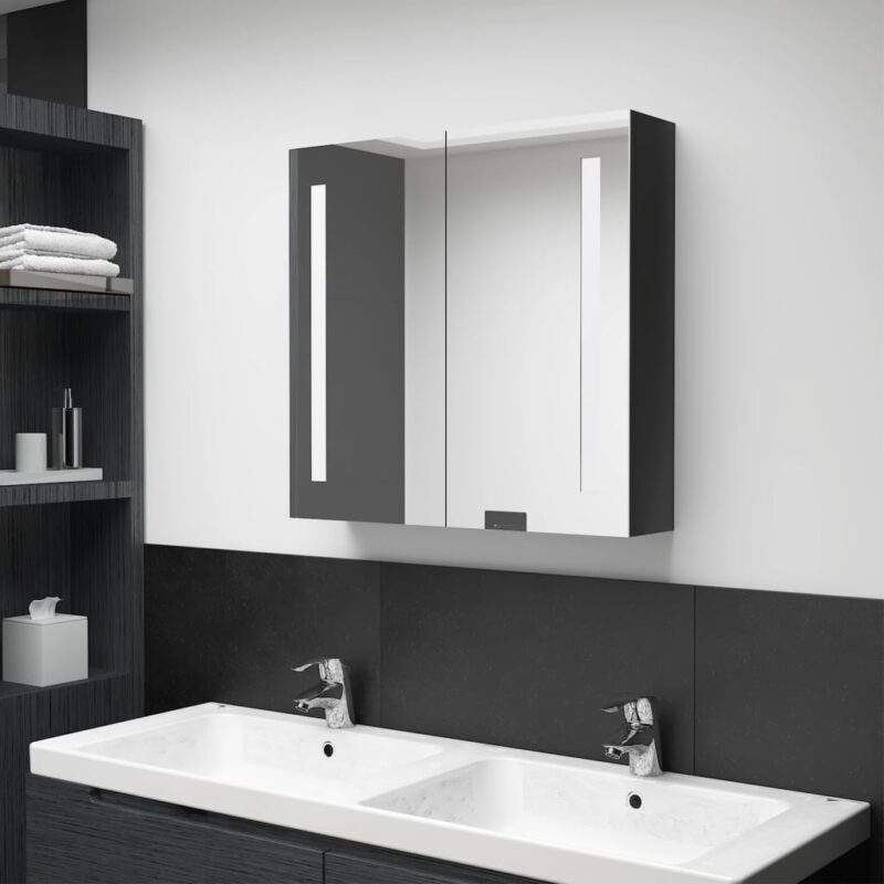 Ajoutez une note d’éclat à votre salle d’eau avec cette armoire de salle de bain à miroir LED Noir brillant, un meuble aussi fonctionnel qu’élégant. Le mélange subtil de son design moderne et de son éclairage LED crée une ambiance à la fois chaleureuse et pratique pour vos rituels quotidiens. Réalisée en panneaux MDF durables dotés d’un revêtement mélaminé, sa solidité et sa résistance sont assurées pour le long terme.