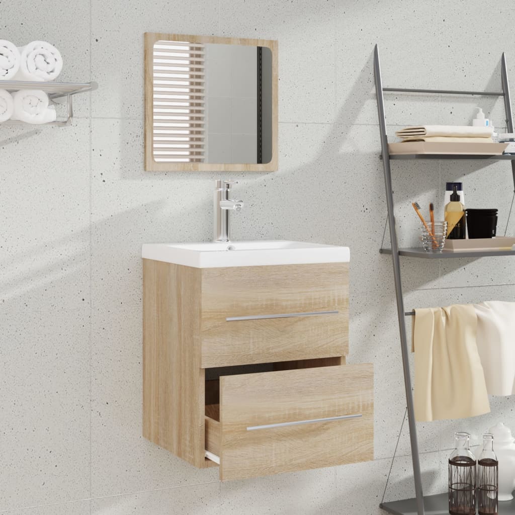 Donnez du cachet à votre salle d’eau grâce à l’Armoire de salle de bain avec miroir Chêne Sonoma, une pièce à la fois esthétique et fonctionnelle. Sa finition Chêne Sonoma apporte un charme contemporain, tout en offrant une organisation impeccable à votre espace.