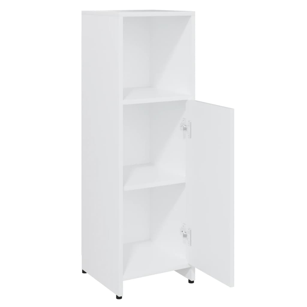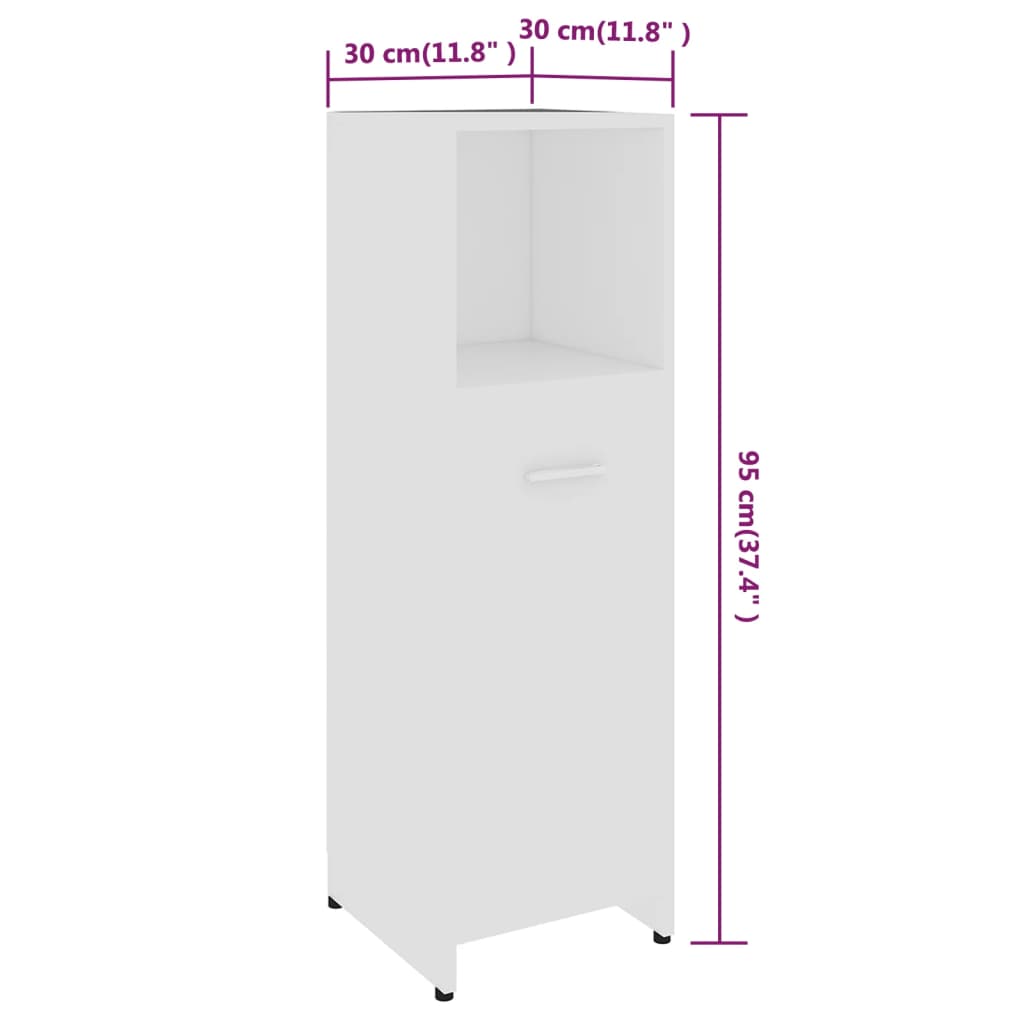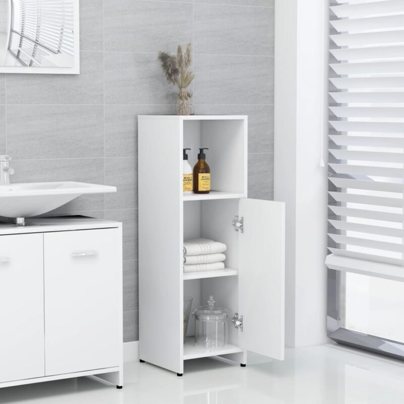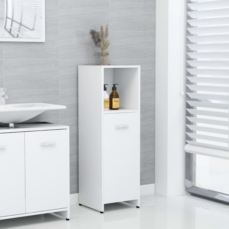 Dotez votre salle d’eau d’une solution de rangement élégante et pratique avec cette armoire de salle de bain Blanc 30x30x95 cm Aggloméré. Dotée d’un design épuré, elle apporte une touche de finesse tout en s’harmonisant avec l’ensemble de votre décoration. Confectionnée en aggloméré de qualité, sa structure garantit durabilité et stabilité. Elle dispose de trois compartiments internes et une porte, multipliant ainsi les possibilités de ranger vos accessoires de toilette et autres indispensables. Grâce à la poignée intégrée, l’accès au contenu de l’armoire est facilité. Un simple coup de chiffon humide suffit pour la maintenir propre et immaculée.