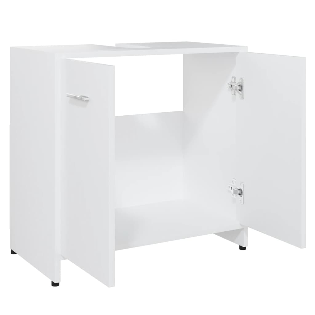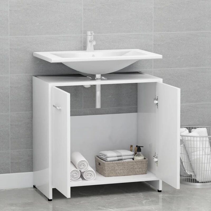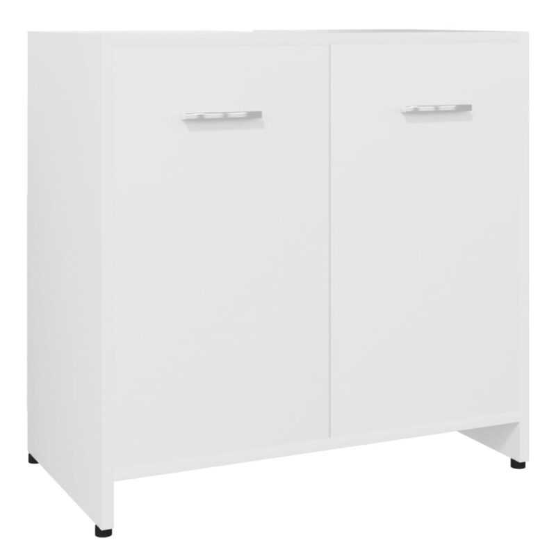 Optimisez votre espace de salle de bain tout en y ajoutant une touche de sophistication grâce à notre armoire de salle de bain Blanc 60x33x61 cm Aggloméré. Son couleur blanche intemporelle et son design minimaliste en font le choix idéal pour un agencement contemporain. La structure en aggloméré assure à cette pièce une grande durabilité et solidité. Elle offre un système de rangement bien conçu avec un secteur et des portes doubles pour ranger aisément vos fournitures de salle de bain. Les poignées sur chaque porte assurent une ouverture et une fermeture aisées. Entretenez cette pièce facilement en la nettoyant simplement avec un chiffon légèrement humide.