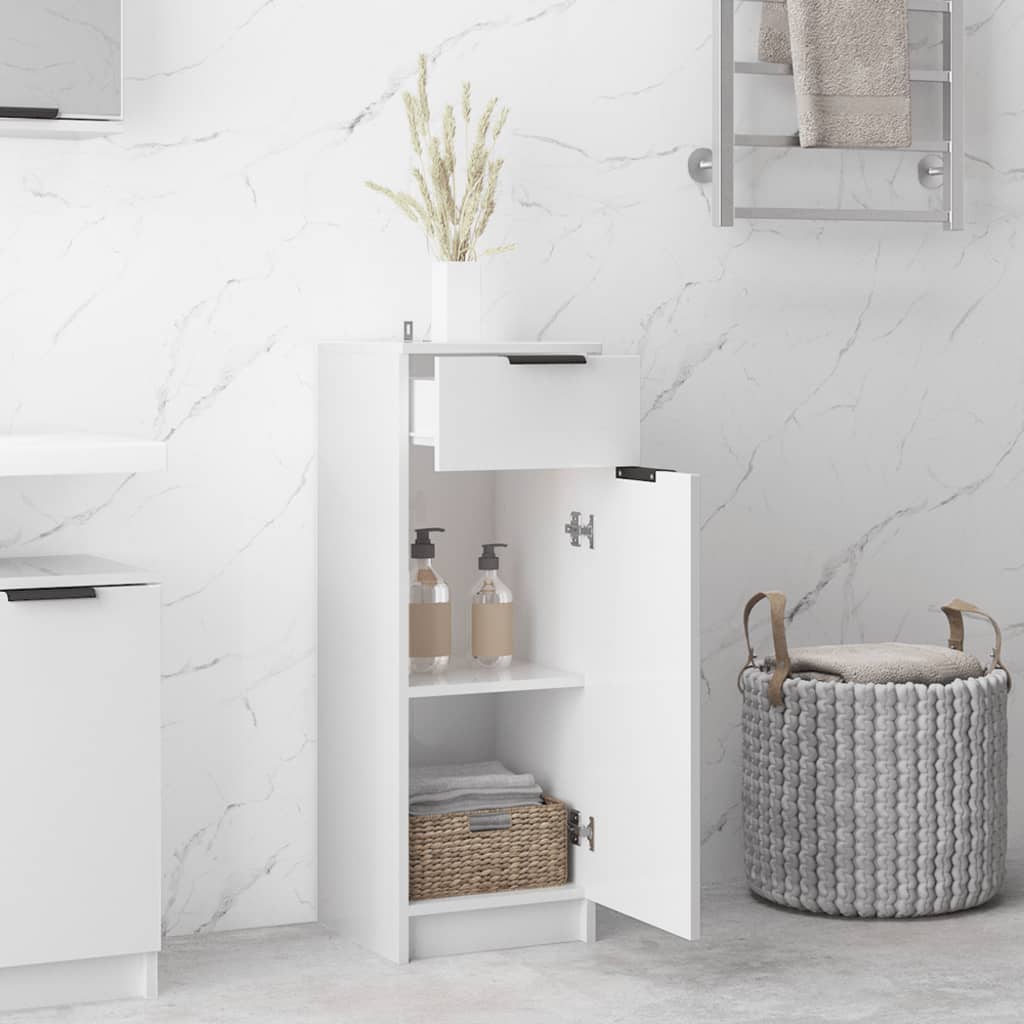 Élevez l’esthétique de votre salle d’eau au rang de chef-d’œuvre grâce à l’Armoire de salle de bain Blanc brillant 32x34x90 cm. Conçue pour résister à l’humidité, sa structure en bois d’ingénierie de haute qualité assure à la fois solidité et longévité, le tout présenté dans un fini éclatant.