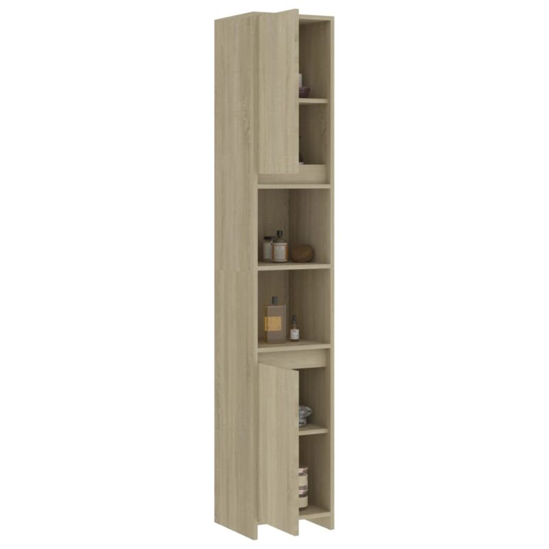 Dotez votre espace d’eau d’un rangement à la fois fonctionnel et esthétique grâce à cette armoire de salle de bain Chêne sonoma 30x30x183,5 cm Aggloméré. Son allure sobre, parsemée d’un charme naturel, se marie à la perfection avec le style de votre salle de bain. La solidité de cette armoire est assurée par sa fabrication en aggloméré de qualité, promettant durabilité et stabilité.