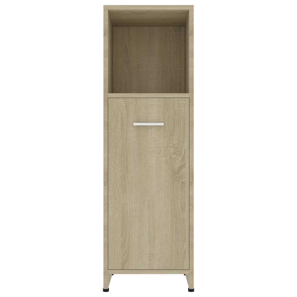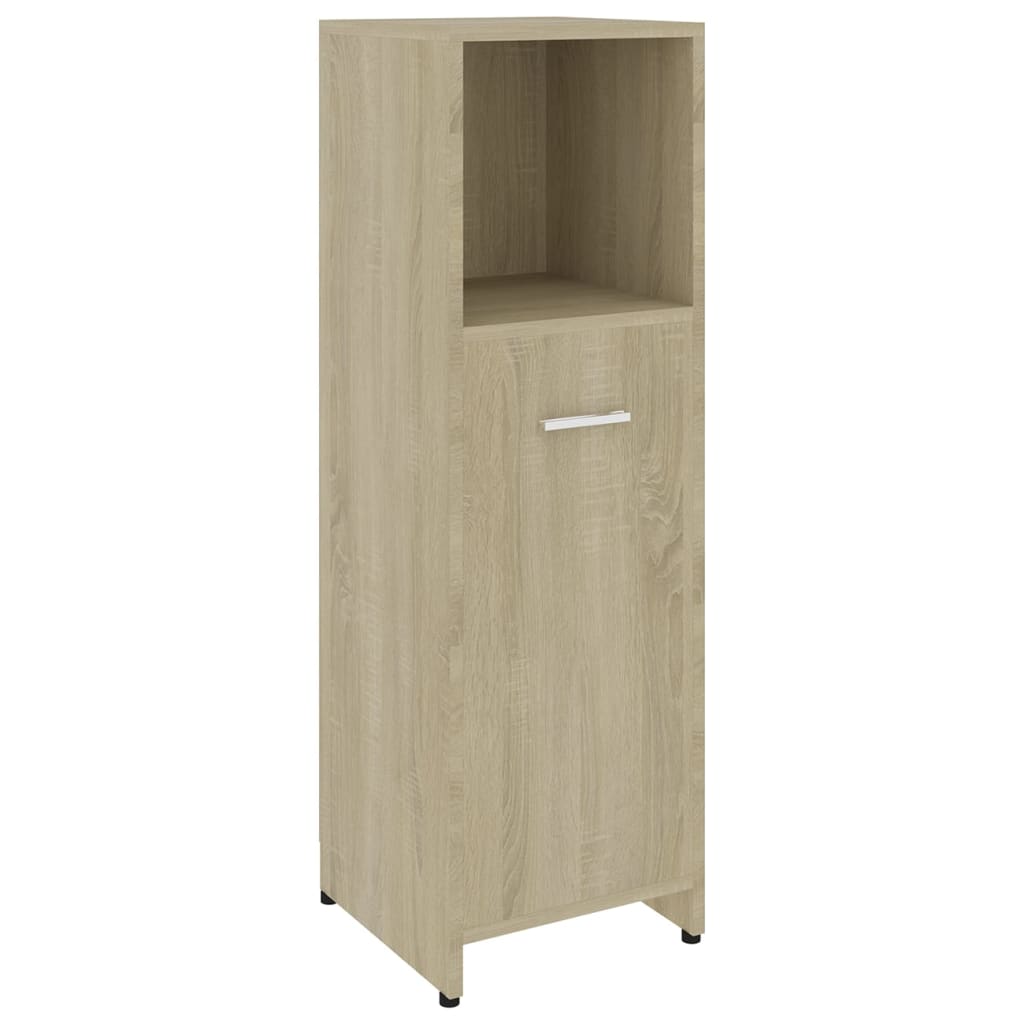 Créez un havre de rangement dans votre salle de bain grâce à cette armoire de salle de bain Chêne sonoma. Son style épuré et raffiné complète à la perfection l’esthétique de votre salle d’eau. La construction en aggloméré assure une solidité et une stabilité à toute épreuve. Cet élément indispensable se dote de trois compartiments et d’une porte, permettant de ranger de multiples accessoires de salle de bain. La porte, équipée d’une poignée, promet une ouverture et une fermeture sans effort. Un simple coup de chiffon humide suffit pour un entretien facile.