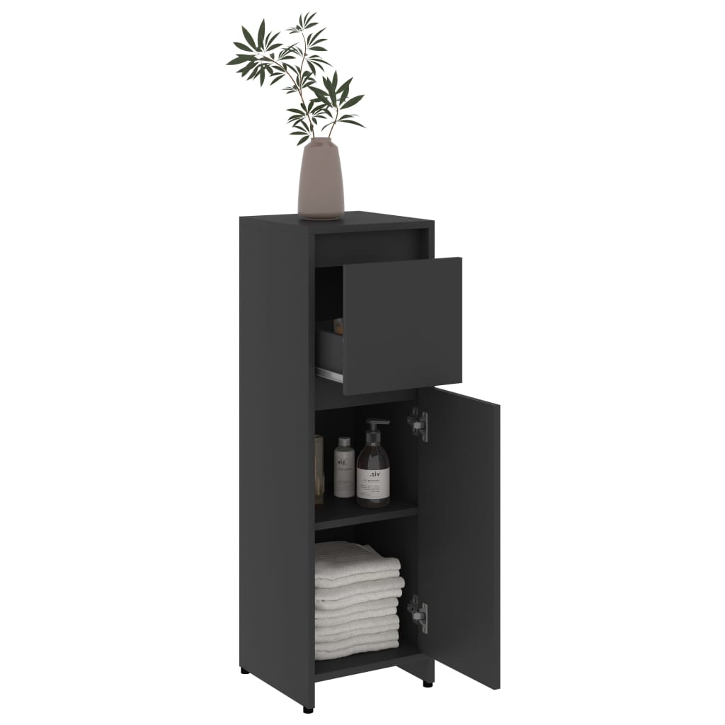 Maximisez l’élégance de votre espace d’hygiène personnelle avec notre armoire de salle de bain grise, une fusion parfaite de style et d’utilité. Conçue pour augmenter votre espace de stockage sans compromettre le style, cette pièce est une incarnation de la finesse et de l’ordre. Elle se compose d’aggloméré durable qui promet robustesse et longue durée de vie, assurant ainsi une présence indéniable et une stabilité à toute épreuve dans votre salle de bain. Son allure épurée et son raffinement n’attendent plus que votre touche personnelle.