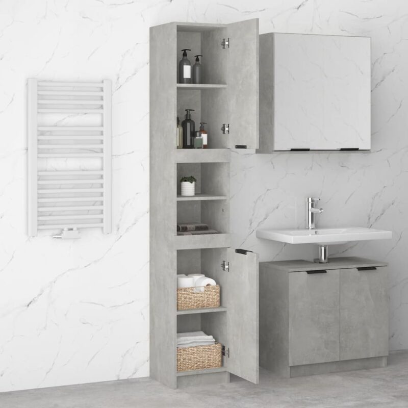 Offrez-vous l’élégance et la fonctionnalité avec cette armoire de salle de bain Gris béton conçue pour harmoniser votre pièce tout en apportant un espace de rangement optimal. Solidité et durabilité sont au rendez-vous grâce à l’utilisation de bois d’ingénierie de haute qualité, reconnu pour sa résistance à l’humidité et sa facilité d’entretien. C’est l’assurance d’un mobilier qui traverse le temps avec vous.