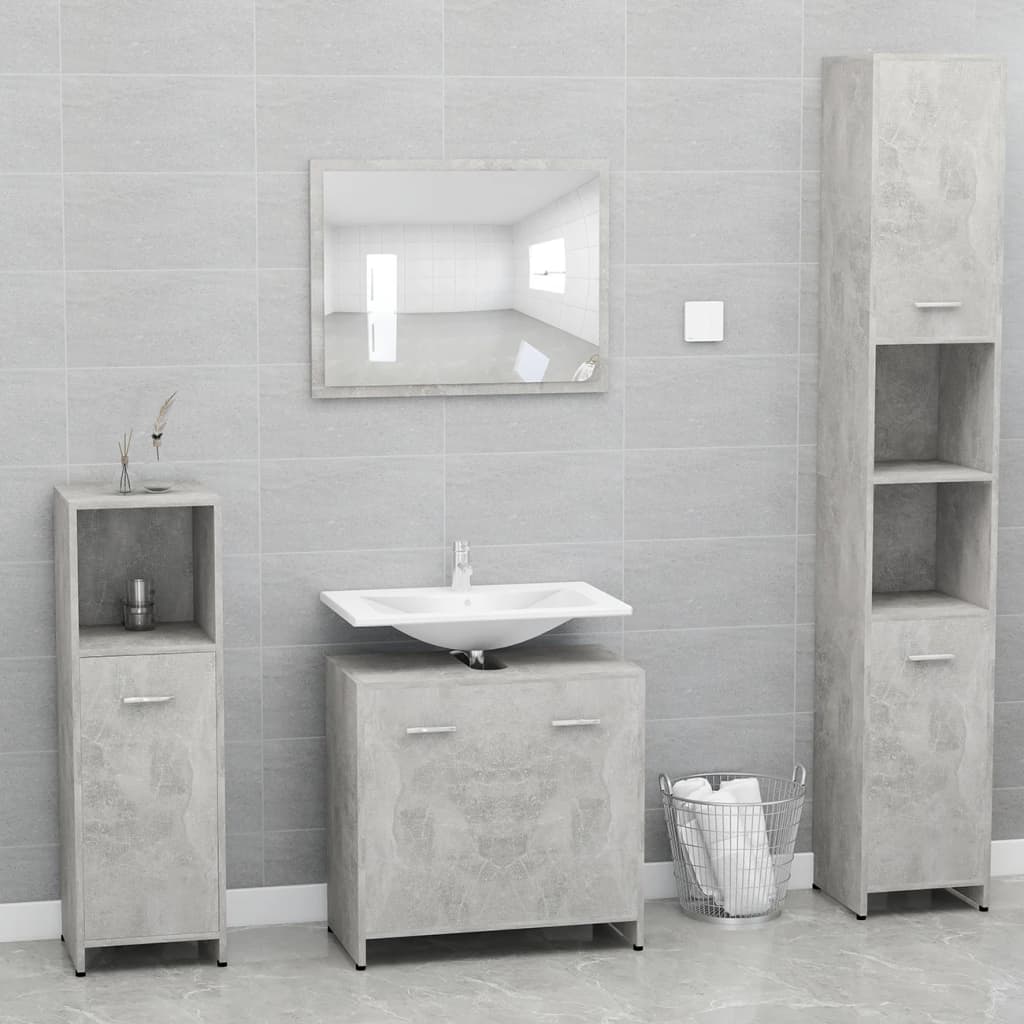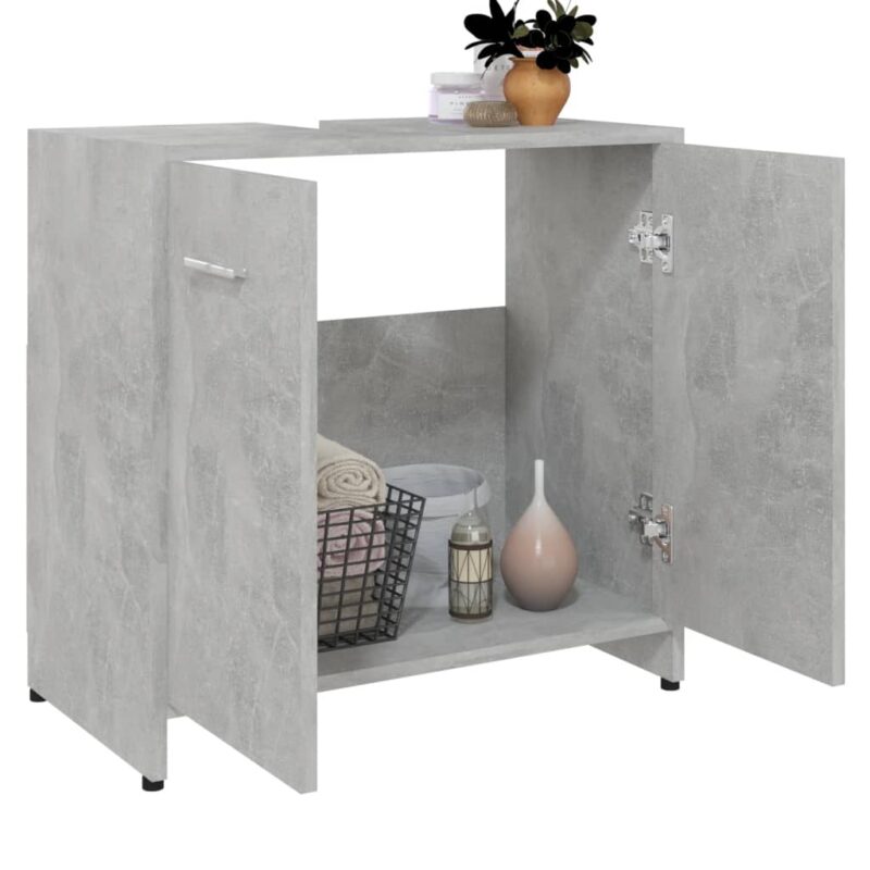 Optimisez votre espace de toilette grâce à l’élégance de l’armoire de salle de bain Gris béton 60x33x61 cm Aggloméré. Avec son design sobre et moderne, cette armoire fusionne discrètement dans tout type de décoration de salle de bain tout en apportant une touche très tendance. Fabriquée avec un aggloméré de haute qualité, elle assure solidité et longévité. Ce meuble bénéficie de deux portes, chaque dotée d’une poignée pour faciliter son ouverture. De plus, son nettoyage est un jeu d’enfant : un coup de chiffon humide et le tour est joué!