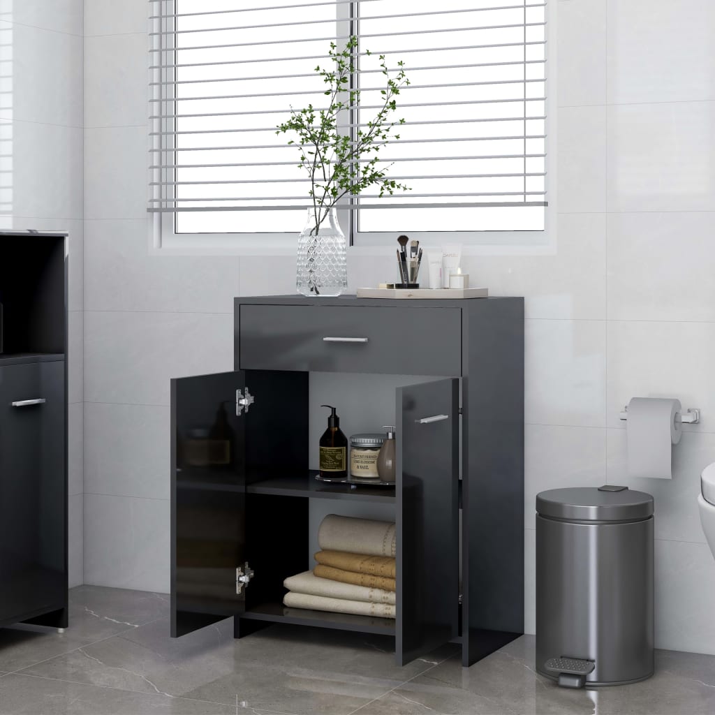 Armoire de salle de bain Gris brillant 60x33x80 cm Aggloméré