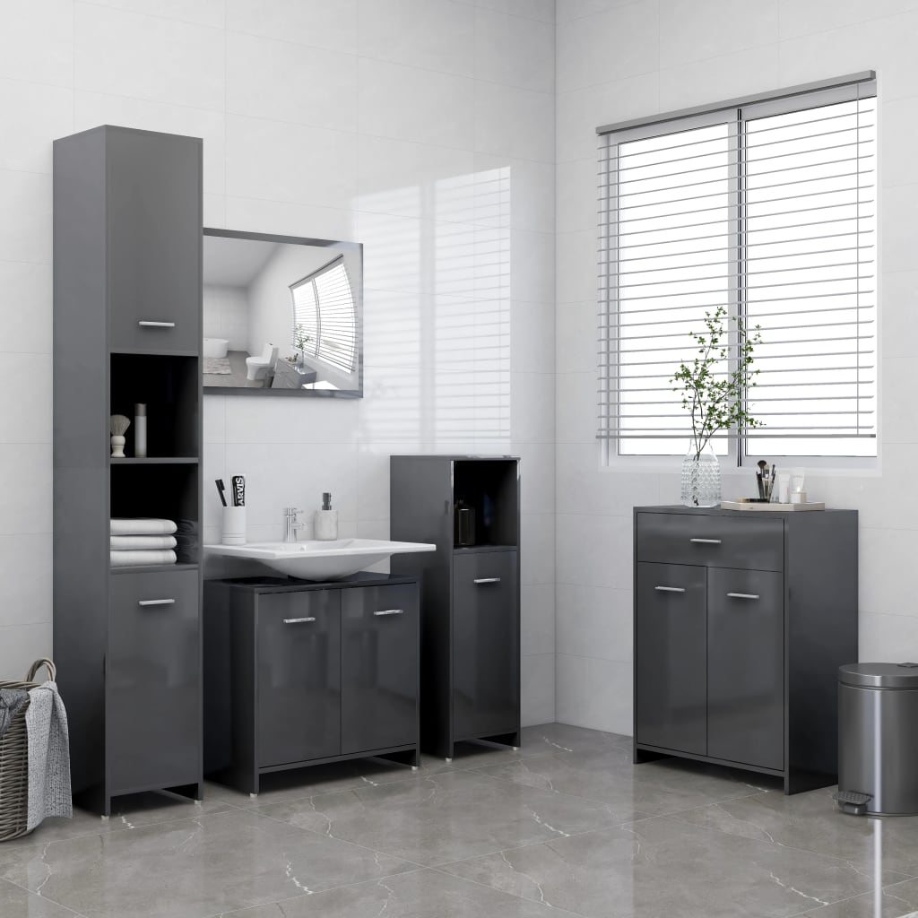 Armoire de salle de bain fonctionnelle et chic gris brillant