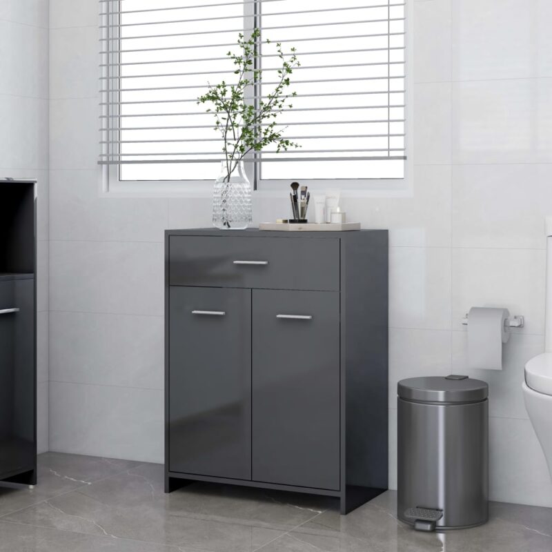 Optez pour une solution de rangement qui combine fonctionnalité et design avec l’Armoire de salle de bain Gris brillant 60x33x80 cm Aggloméré. Son allure moderne et son fini gris éclatant apportent une touche de raffinement à votre intérieur. Fabriquée en aggloméré de haute qualité, cette armoire est conçue pour durer tout en apportant une organisation inégalée à votre espace.