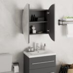 Armoire de salle de bain miroir rond et LED Gris 47x47x17,5 cm 164.99