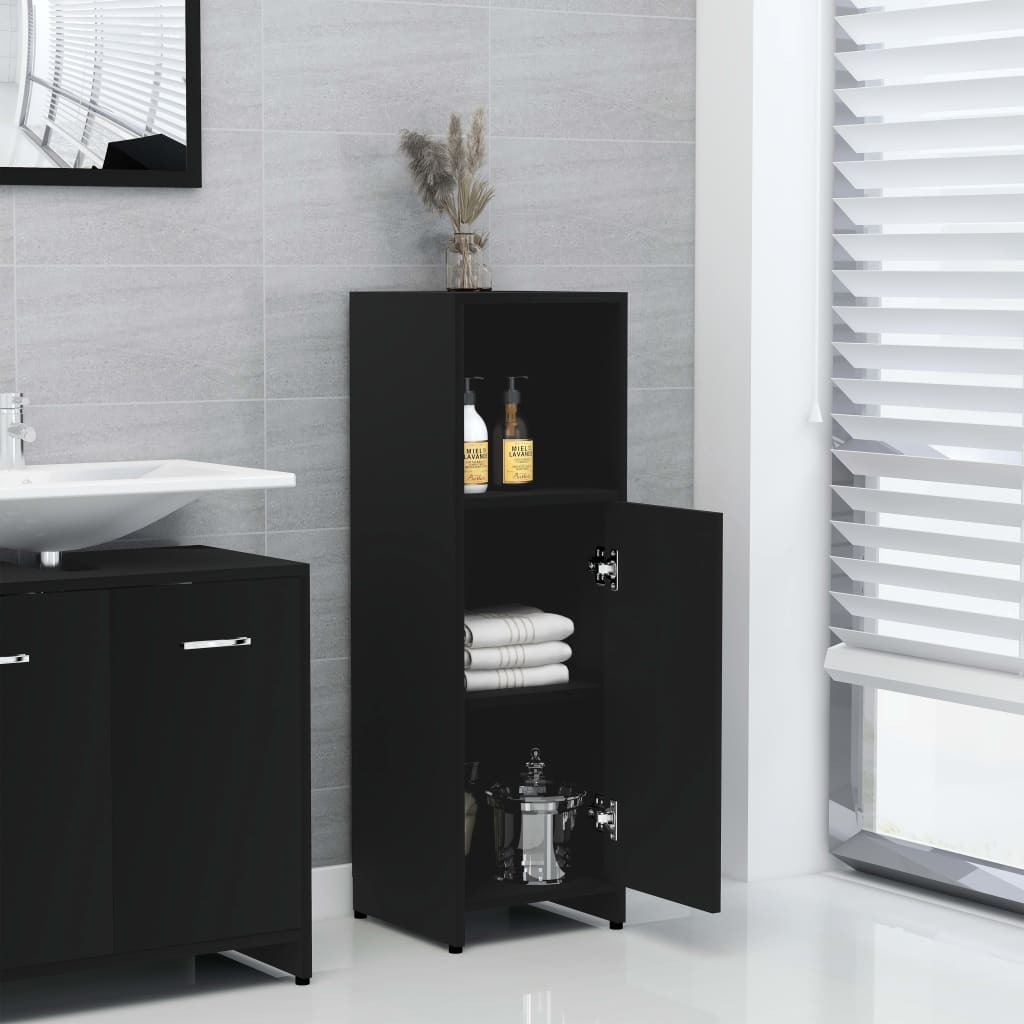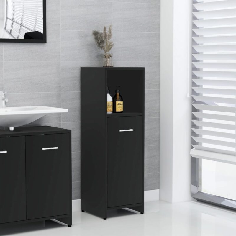Incorporez un élément de rangement fonctionnel et stylé à votre salle d’eau avec cette armoire de salle de bain Noir 30x30x95 cm Aggloméré. Avec son aspect sobre et une finition soignée, ce meuble s’intégrera aisément à l’aménagement de votre salle de bain, y ajoutant une touche moderne. Confectionnée dans un matériau durable qu’est l’aggloméré, l’armoire garantit une longévité et une stabilité de premier ordre. Ses trois compartiments intérieurs derrière une porte élégante sont parfaits pour organiser vos effets personnels et produits de beauté, tandis qu’une poignée assure une manipulation facile. Son entretien est un jeu d’enfant : un simple nettoyage au chiffon humide suffira pour la maintenir impeccable.