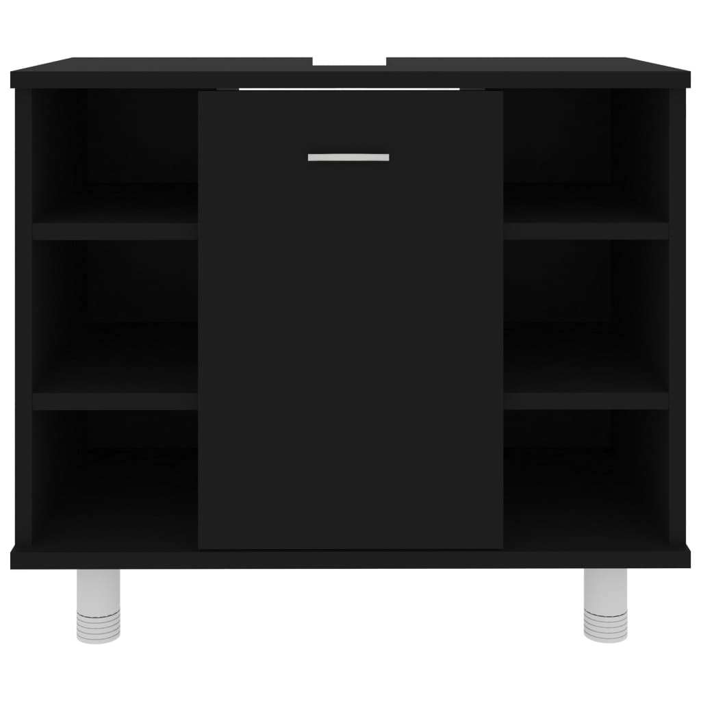 Réinventez l’organisation de votre salle de bain avec cette armoire de salle de bain Noir 60x32x53,5 cm Aggloméré, conçue pour apporter à la fois style et fonctionnalité. Son agencement astucieux permet de profiter d’une salle de bain ordonnée aux allures modernes grâce à son esthétique sobre et raffinée. Sa structure en aggloméré offre solidité et pérennité, assurant une utilisation durable. Équipée de 7 compartiments variés et d’une porte, elle propose de multiples options pour organiser vos affaires de toilette, tout en y ajoutant une touche d’élégance. La poignée sur la porte facilite l’ouverture et la fermeture, et son entretien est simplifié puisqu’un simple coup d’éponge suffit pour la nettoyer.