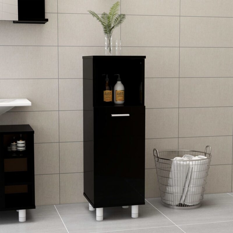 Réinventez l’organisation de votre salle de bain grâce à l’Armoire de salle de bain Noir brillant 30x30x95 cm Aggloméré. Cette pièce de mobilier ajoute non seulement de l’élégance à votre espace, mais propose également une solution de rangement intelligente. Fabriqué en panneau d’aggloméré de haute qualité, cet équipement promet robustesse et durabilité, tout en affichant un design sobre qui se fond dans le décor de votre salle d’eau.
