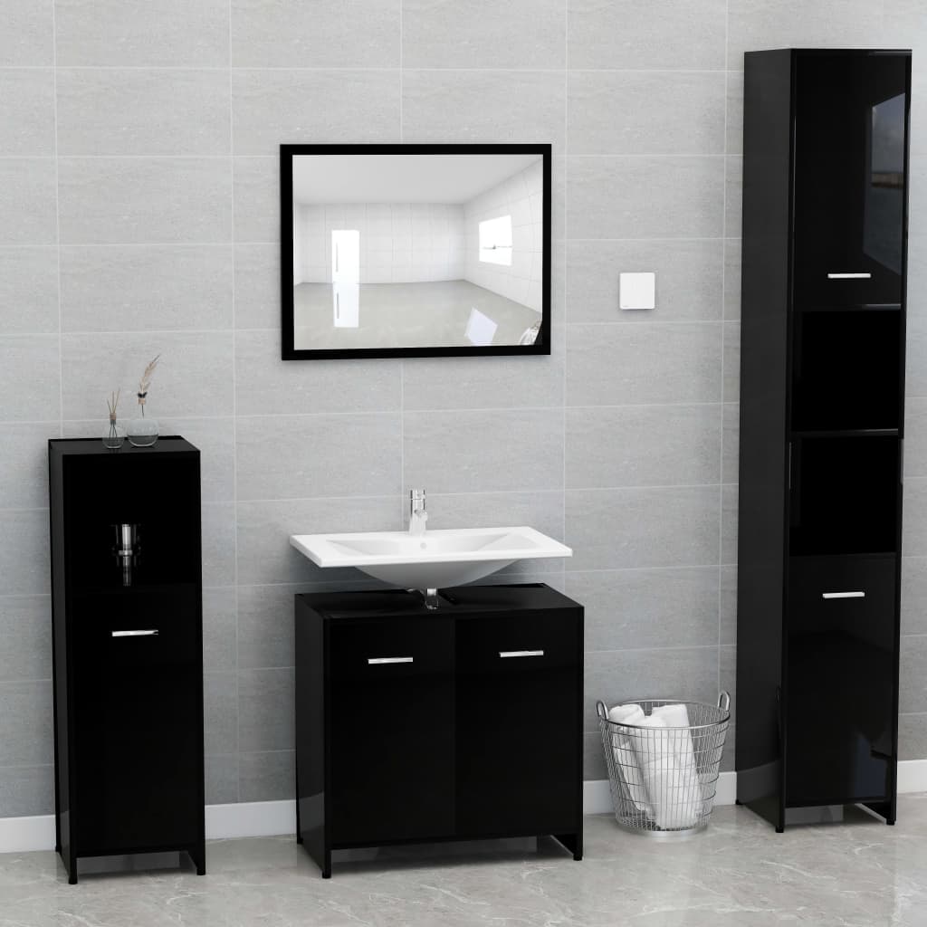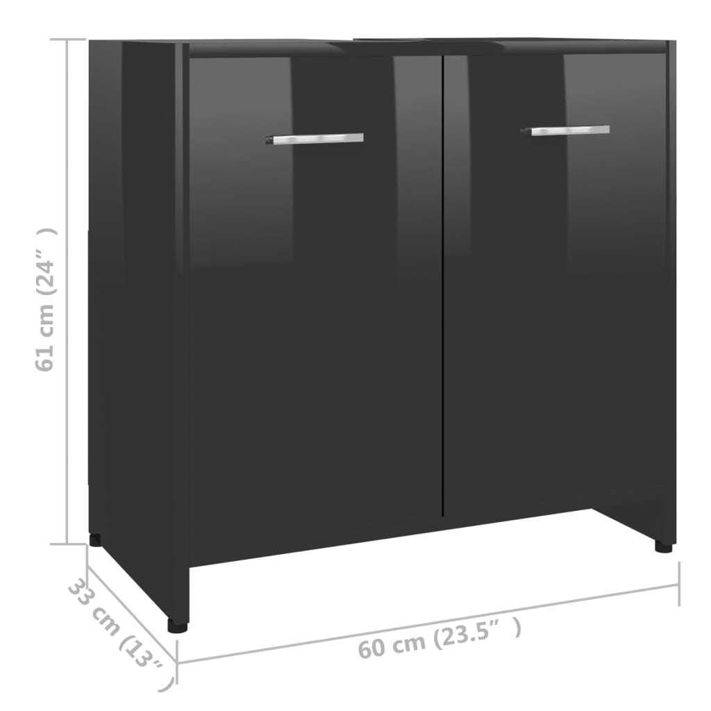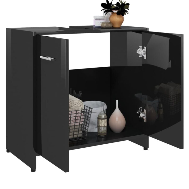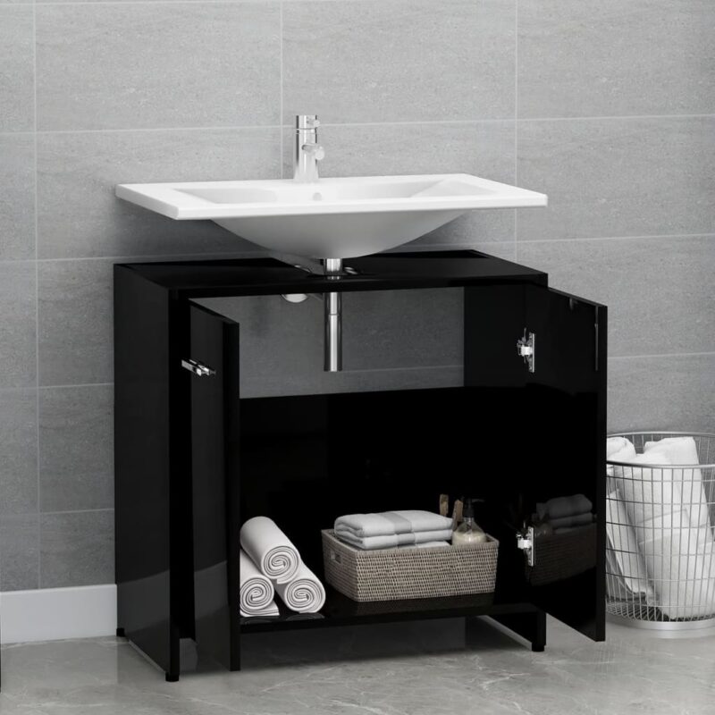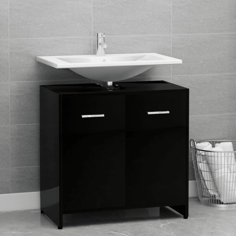 Offrez à votre salle de bain une solution de rangement à la fois fonctionnelle et esthétique. Cette armoire de salle de bain Noir brillant 60x33x61 cm Aggloméré se démarque par son allure raffinée, se fondant subtilement dans votre espace bien-être. Grâce à sa structure en aggloméré de qualité, durabilité et stabilité sont au rendez-vous.