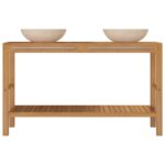 Armoire de toilette en teck solide avec lavabos en marbre Crème : un ajout luxueux pour votre salle d’eau