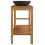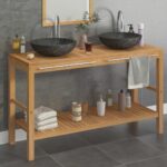 Une touche d’élégance : Armoire de toilette en teck solide avec lavabos en marbre noir