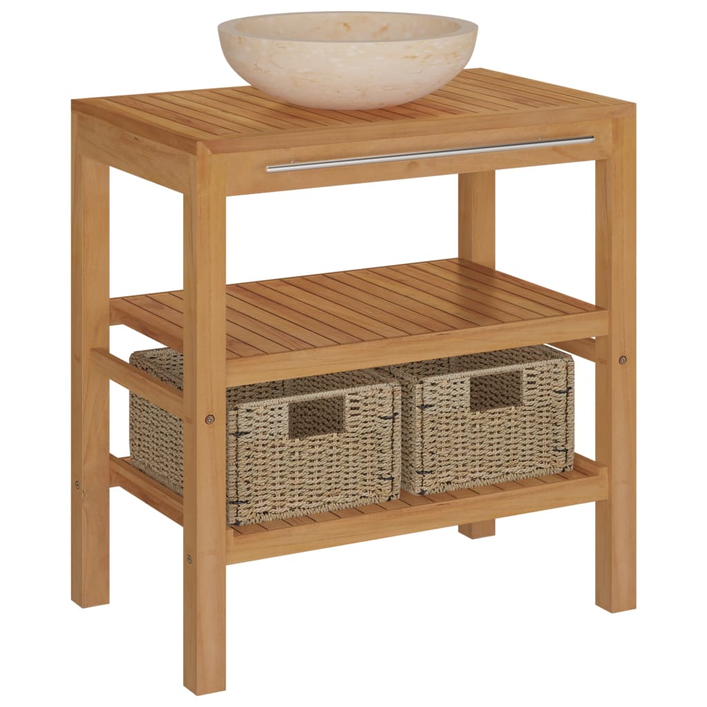 Armoire de toilette Teck solide avec lavabo en marbre Noir