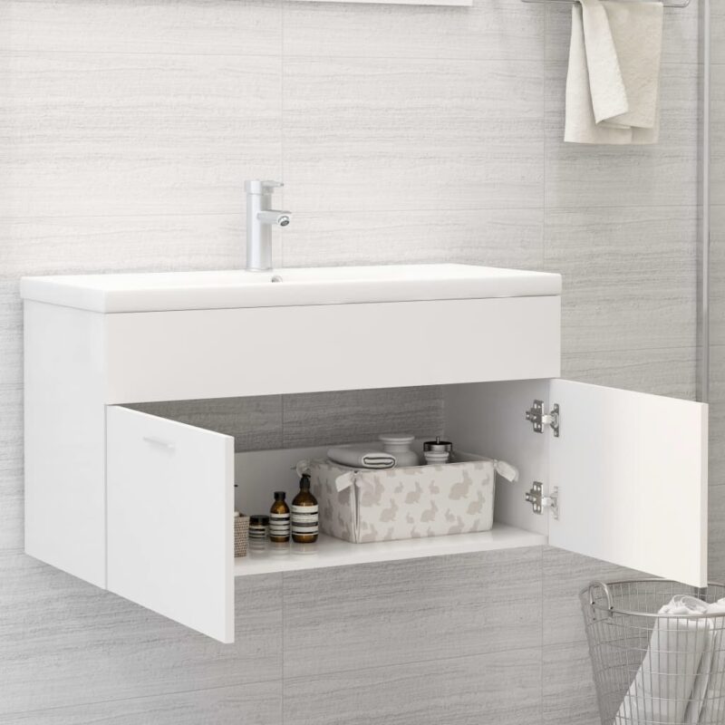 Armoire d’évier avec lavabo intégré Blanc Aggloméré pour votre salle d’eau