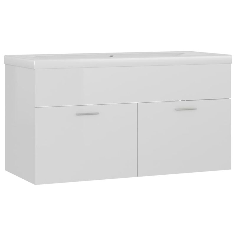 Armoire d’évier avec lavabo intégré blanc brillant pour salle de bain