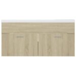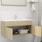 Adoptez l’alliance parfaite de fonctionnalité et d’élégance avec cette armoire d’évier avec lavabo intégré Chêne sonoma Aggloméré. Sa conception intelligente vous offre un rangement optimal sans faire l’impasse sur le style. Confectionnée à partir d’aggloméré, cette armoire se distingue par sa solidité et sa stabilité garantie. L’espace de rangement se compose d’un compartiment pratique et de deux portes, de quoi organiser aisément vos effets personnels. Conçu pour s’insérer harmonieusement sous votre évier, elle rendra votre routine quotidienne plus agréable et ordonnée.