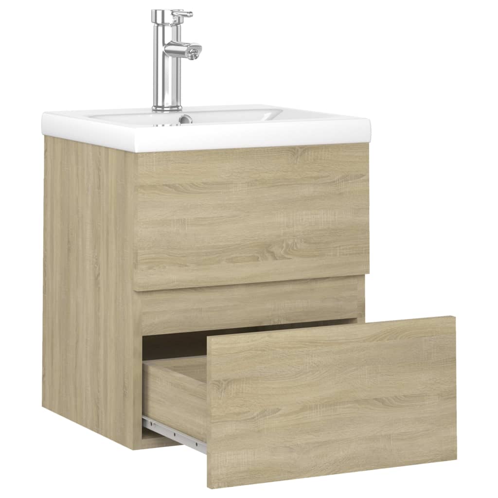 Détails de l’armoire d’évier avec lavabo intégré Chêne sonoma Aggloméré