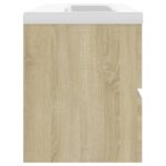 Optimisez l’espace de votre salle d’eau avec la armoire d’évier avec lavabo intégré Chêne sonoma Aggloméré qui allie esthétique et utilité. Elle arbore un design épuré qui s’intègre avec harmonie à différents styles de décoration. Son lavabo en céramique, qui fait également partie de l’ensemble, assure une durabilité et une esthétique intemporelle. La praticité est au rendez-vous grâce à son trop-plein, conçu pour évacuer l’excès d’eau et maintenir la propreté de la surface.
