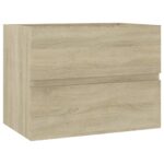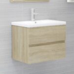 Découvrez comment cette armoire d’évier avec lavabo intégré Chêne sonoma Aggloméré peut transformer et organiser votre salle de bains.