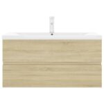 - 1 x Armoire d’évier avec lavabo intégré Chêne sonoma Aggloméré et robinet