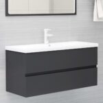 Découvrez l’élegance de l’armoire d’évier avec lavabo intégré en gris aggloméré