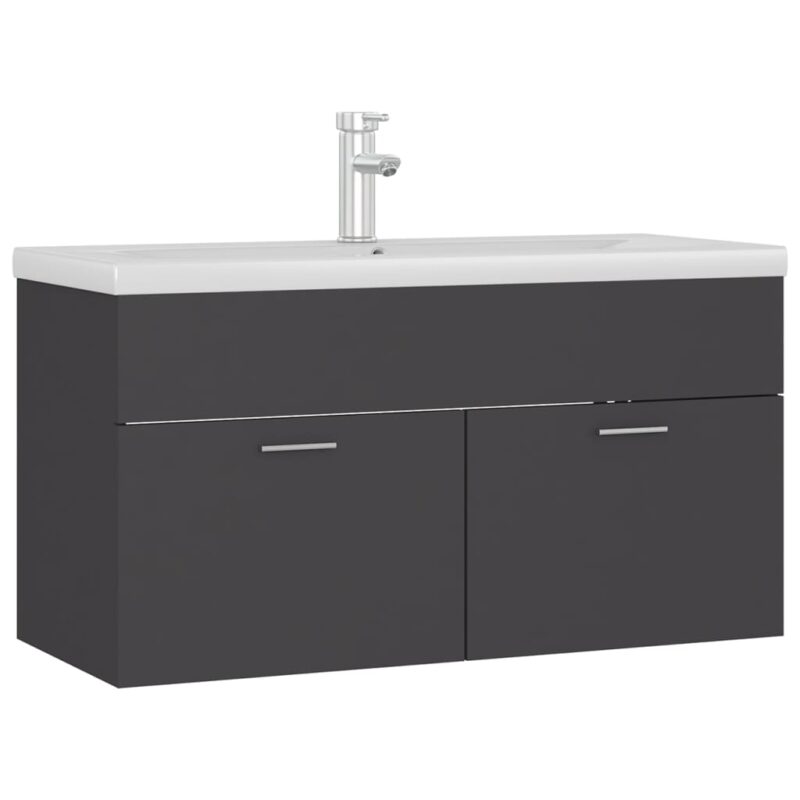Armoire d’évier avec lavabo intégré Gris Aggloméré