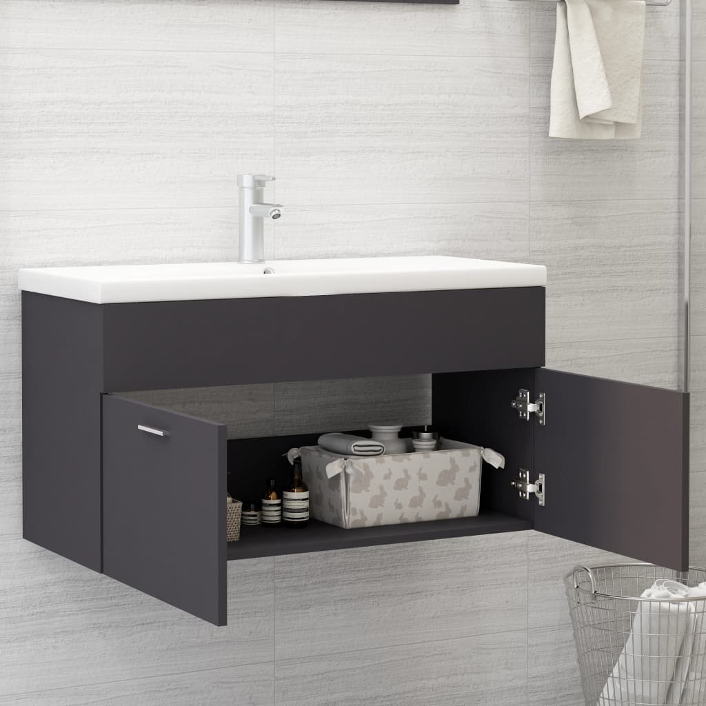Armoire d'évier avec lavabo intégré Gris Aggloméré - Espace optimisé et design moderne