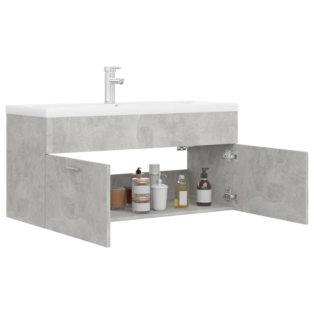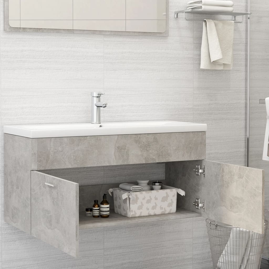 Armoire d’évier avec lavabo intégré – Élégance en Gris béton Aggloméré