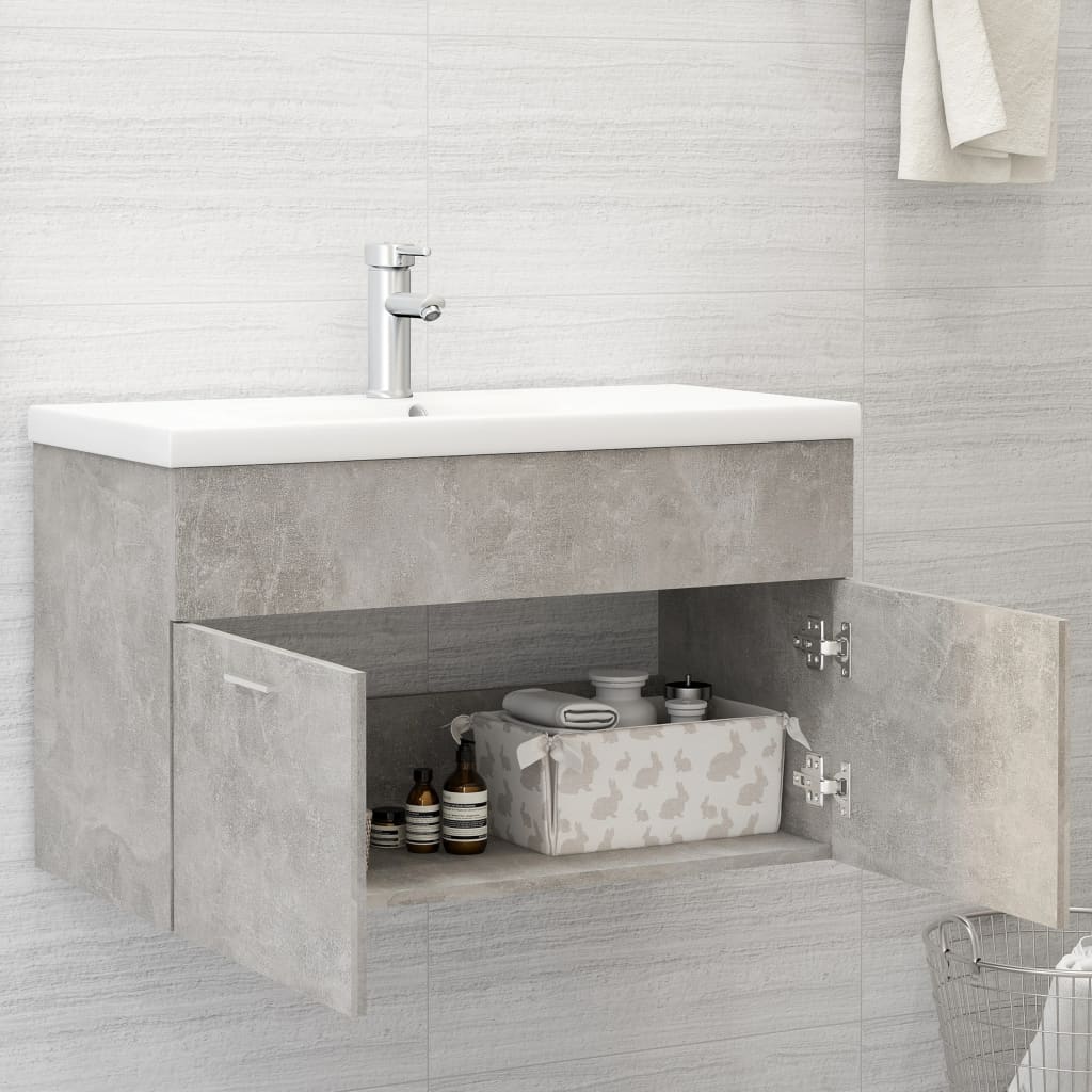 Armoire d’évier avec lavabo intégré Gris béton aggloméré: apportez une touche contemporaine à votre salle d’eau