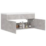 Offrez une touche de modernité et de sophistication à vos espaces d’eau avec notre Armoire d’évier avec lavabo intégré Gris béton Aggloméré. Constituée de matériaux de qualité, l’aggloméré assure à l’armoire robustesse et stabilité, promettant ainsi de résister à l’usure du temps. Son vaste compartiment surmonté de deux portes procure un large espace pour organiser efficacement vos articles de salle de bain. Conçu pour optimiser l’espace sous l’évier, ce meuble est la solution idéale pour un rangement ingénieux.