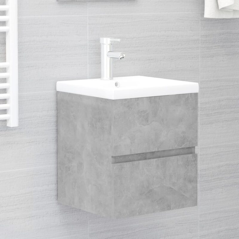 Armoire d’évier avec lavabo intégré Gris béton Aggloméré pour une salle de bain stylée
