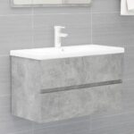 N’hésitez pas à choisir cette Armoire d’évier avec lavabo intégré Gris béton Aggloméré pour un mélange parfait entre fonctionnalité et esthétique qui captivera l’attention dans votre salle de bain.