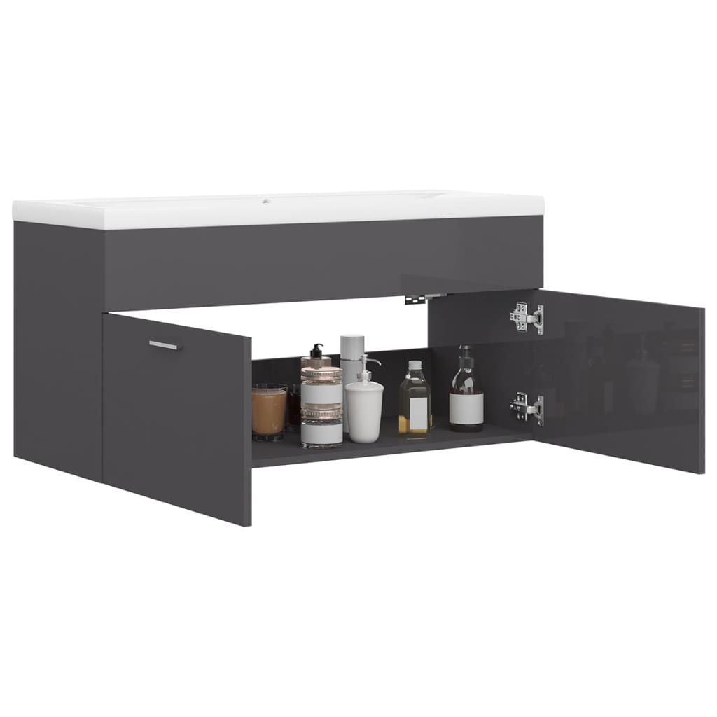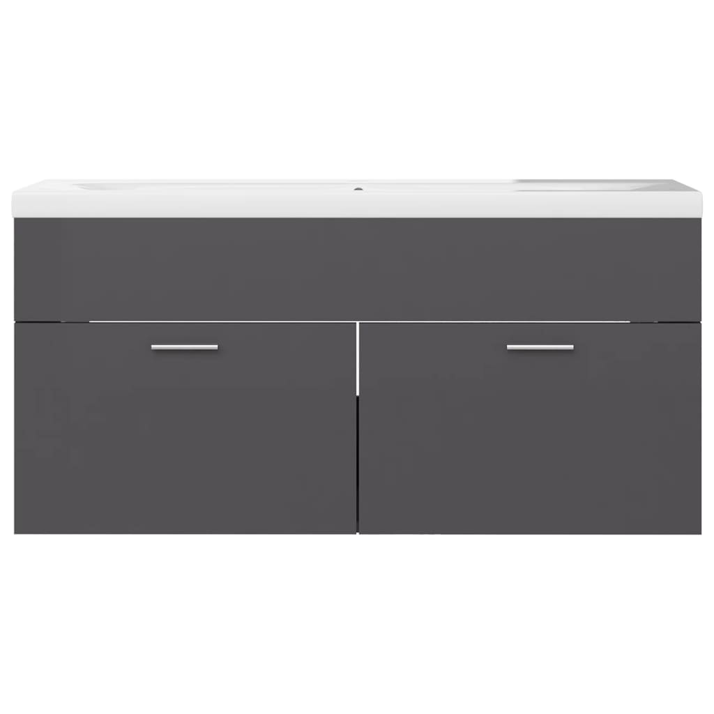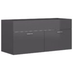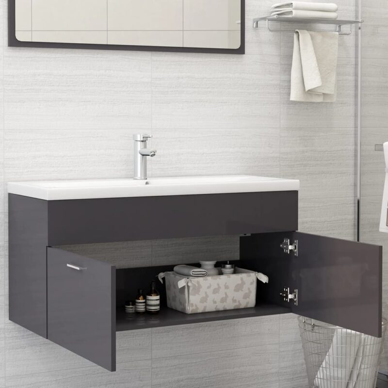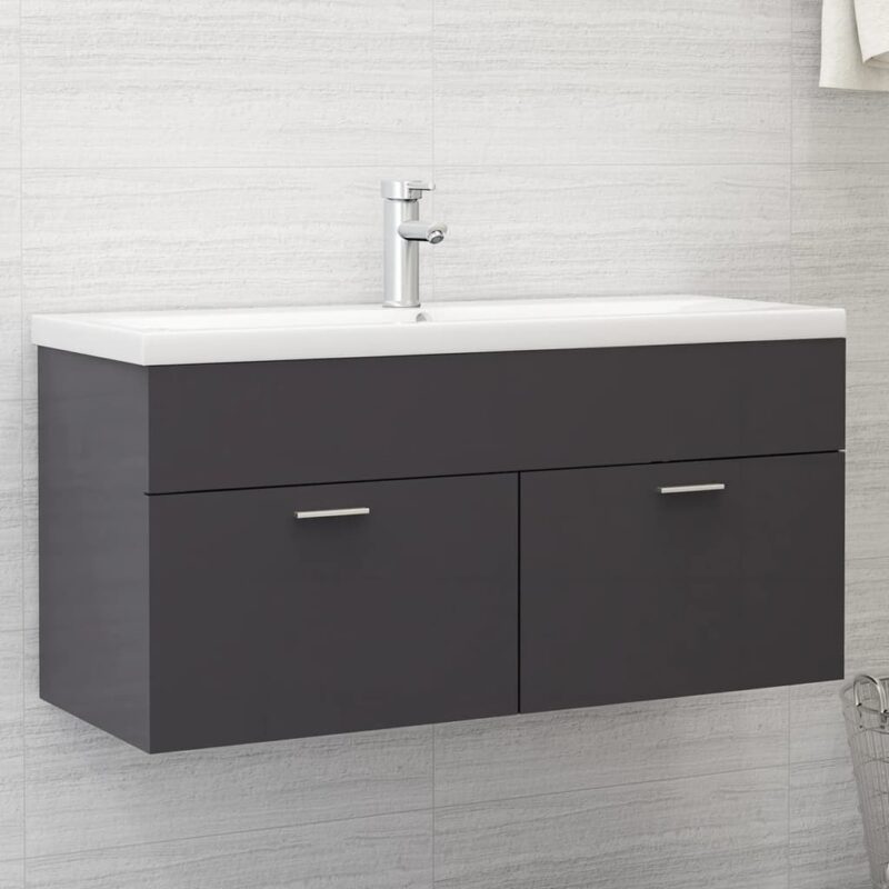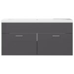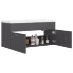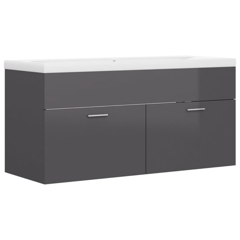 Découvrez notre armoire d’évier avec lavabo intégré gris brillant aggloméré
