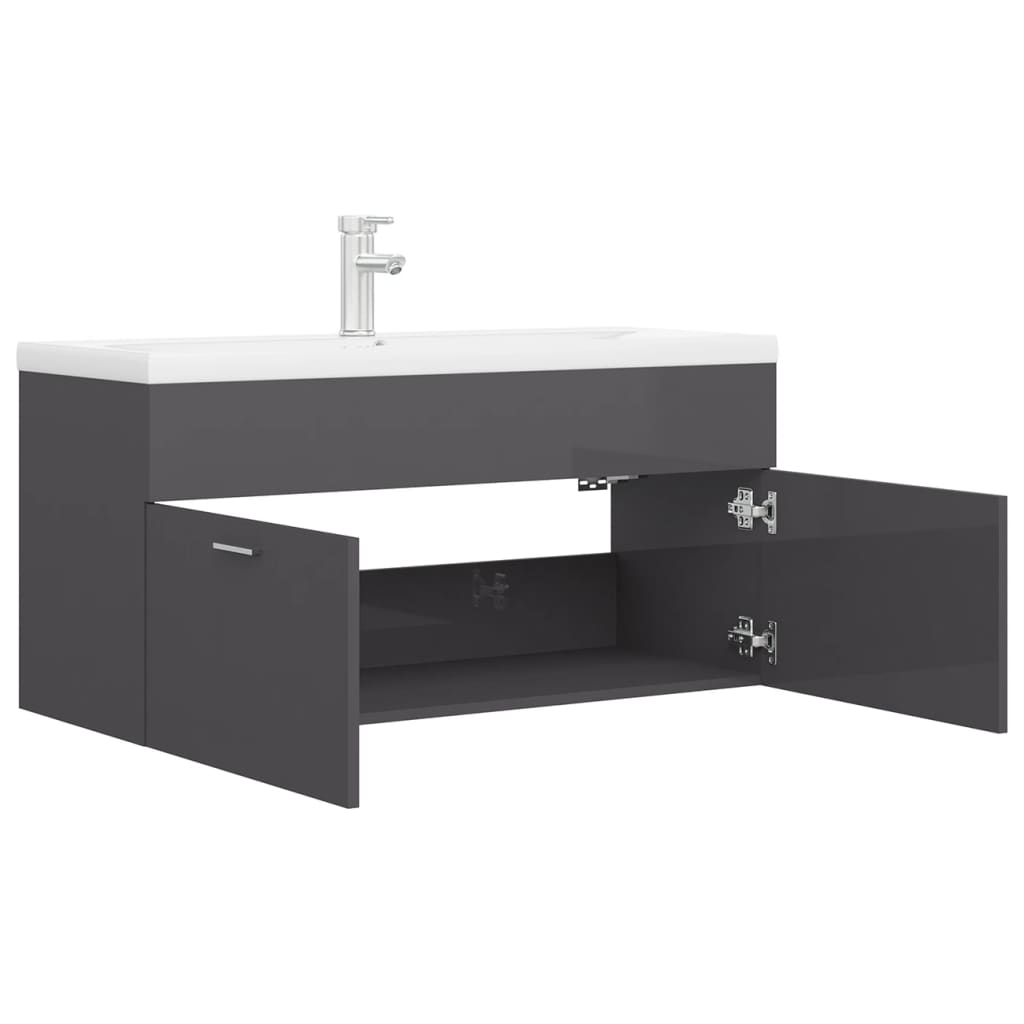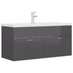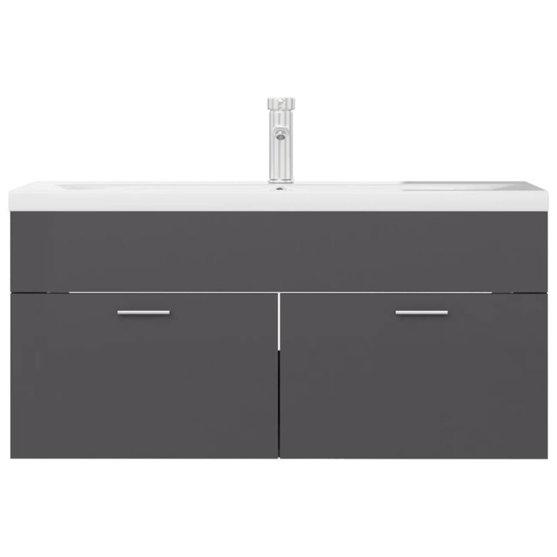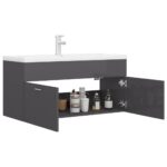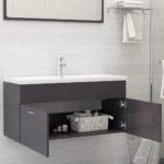 Détails de l’armoire d’évier avec finition gris brillant