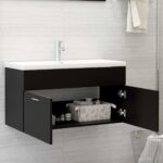 Transformez votre salle d’eau avec l’armoire d’évier avec lavabo intégré Noir Aggloméré