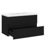 Optimisez l’utilisation de l’espace dans votre salle d’eau avec notre élégante armoire d’évier avec lavabo intégré noir aggloméré, conçue pour apporter une touche de sophistication à votre environnement. Avec un tiroir spacieux, vous bénéficiez d’un rangement adéquat pour dissimuler les produits d’hygiène, garantissant un espace ordonné. L’intégration sous l’évier facilite le rangement et préserve l’harmonie du lieu.