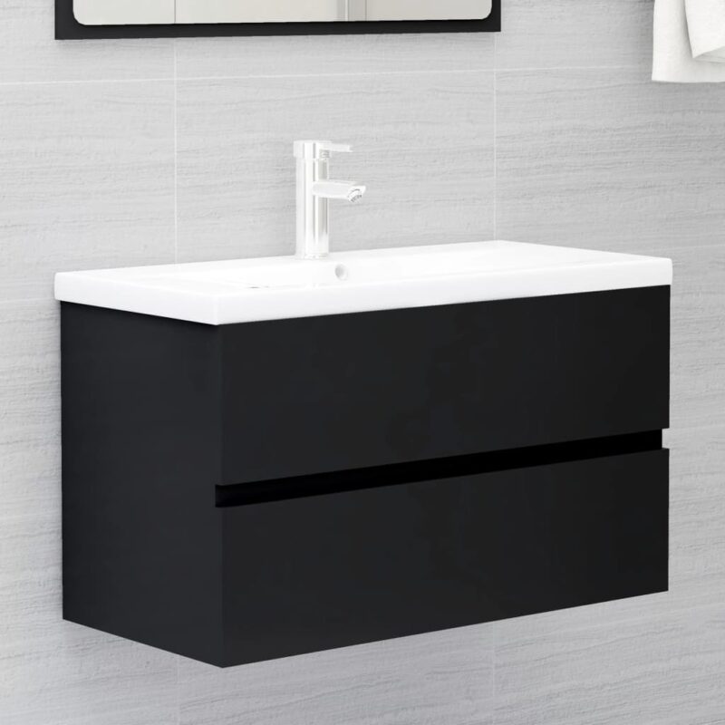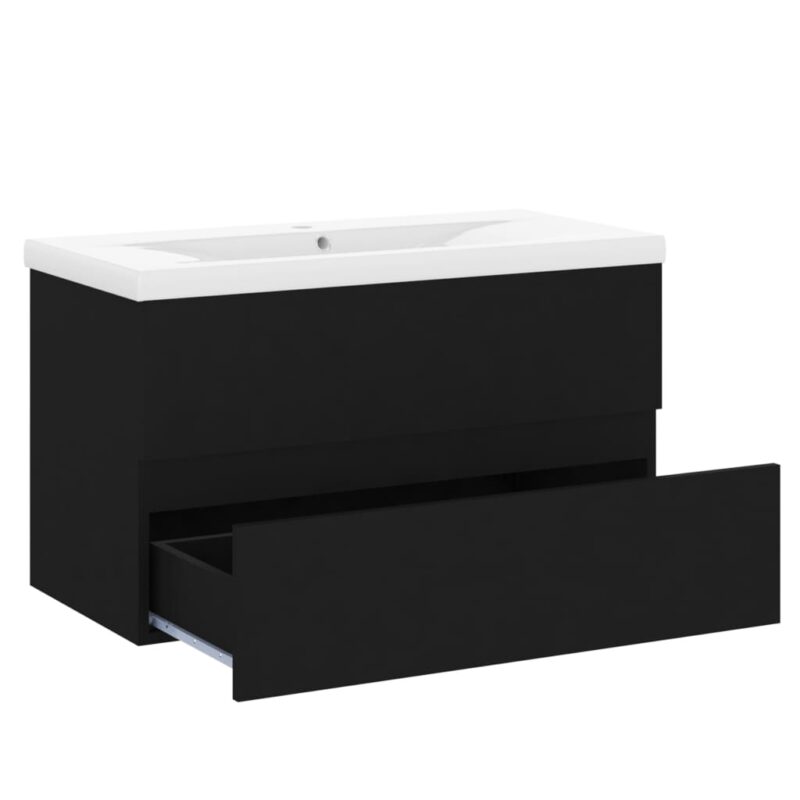 Panorama de l’armoire d’évier avec lavabo intégré noir aggloméré