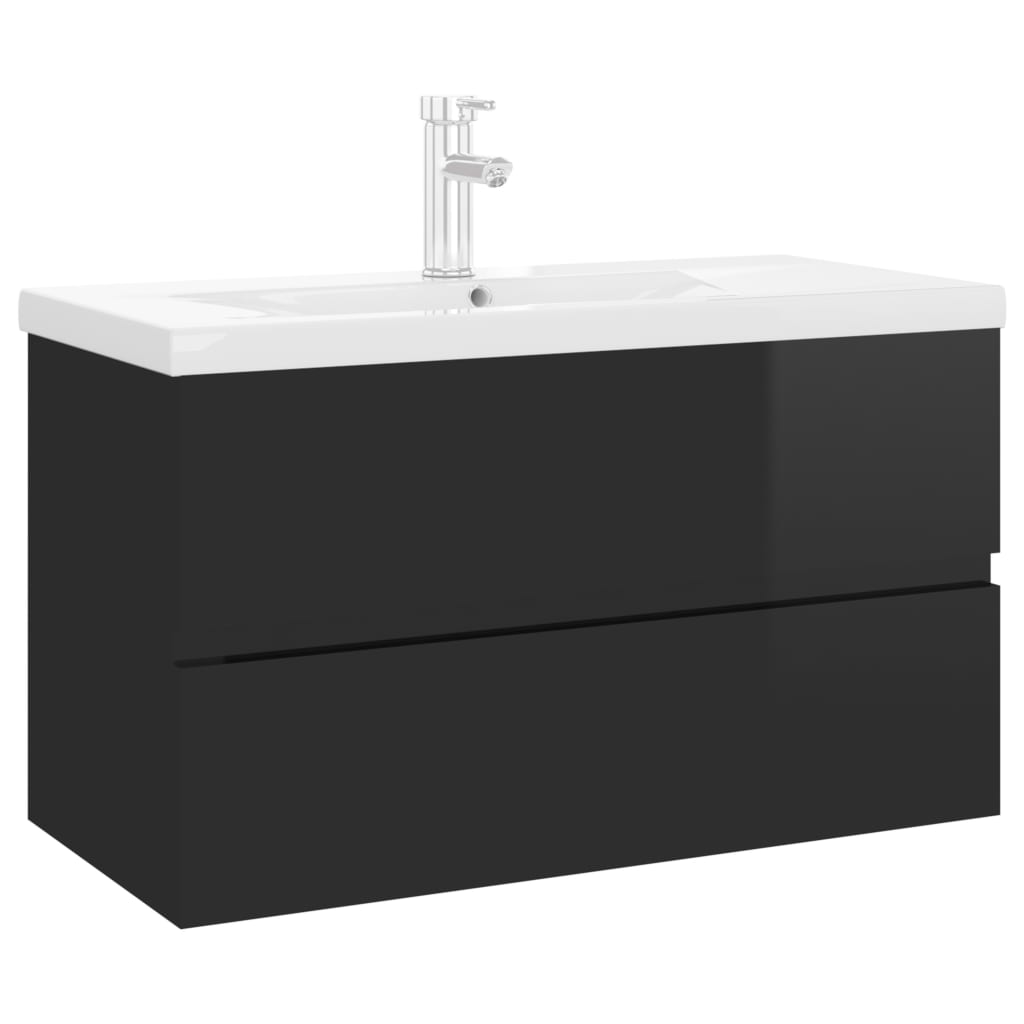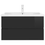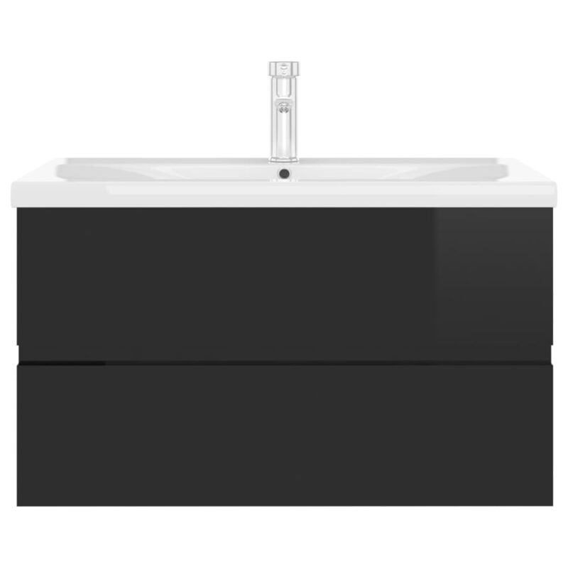Armoire d'évier avec lavabo intégré Noir brillant Aggloméré 312.99